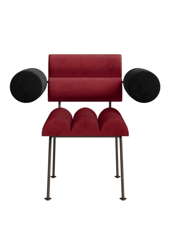 Designerski fotel z podłokietnikami z kolekcji ROLL&ROLL autorstwa Katarzyny Jasyk. Łączy nowoczesny design z wygodą użytkowania. Tapicerowany ekskluzywną tkaniną velvetową i osadzony na stabilnej metalowej podstawie. Idealny do jadalni, salonu oraz przestrzeni publicznych.
