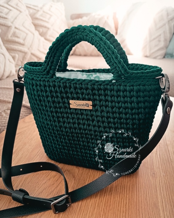 Ten ręcznie wykonany koszyk to połączenie lekkości, funkcjonalności i wyjątkowego stylu. Szydełkowana forma z dodatkiem skórzanych elementów tworzy harmonijną całość, która świetnie sprawdza się zarówno na co dzień, jak i jako oryginalny dodatek do stylizacji.