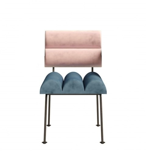 Designerskie krzesło ROLL&ROLL projektu Katarzyny Jasyk inspirowane estetyką legendarnej Grupy Memphis. Charakterystyczne wałkowe siedzisko i oparcie zapewniają wygodę, a metalowa podstawa nadaje stabilność. Tapicerowane wysokiej jakości tkaniną velvetową. Dostępne w różnych wariantach kolorystycznych.