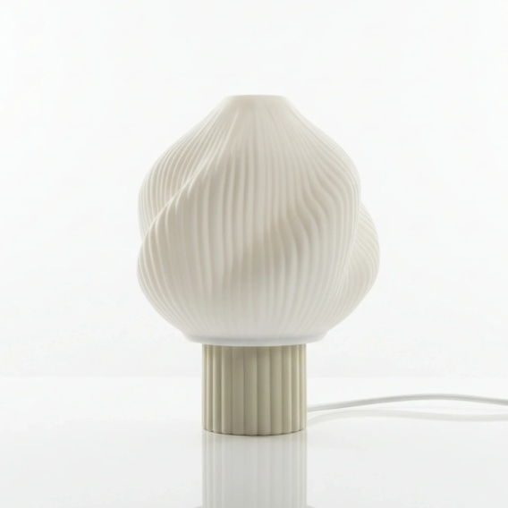 Twist Creme to designerska lampa o miękkiej, spiralnej formie, która wprowadza do wnętrza ciepłe i spokojne światło.Jej subtelny skręt przyciąga wzrok, jednocześnie zachowując lekkość i harmonię w przestrzeni.Drukowana w technologii 3D i tworzona na zamówienie, sprawdzi się jako nastrojowe oświetlenie do salonu, sypialni lub strefy relaksu.