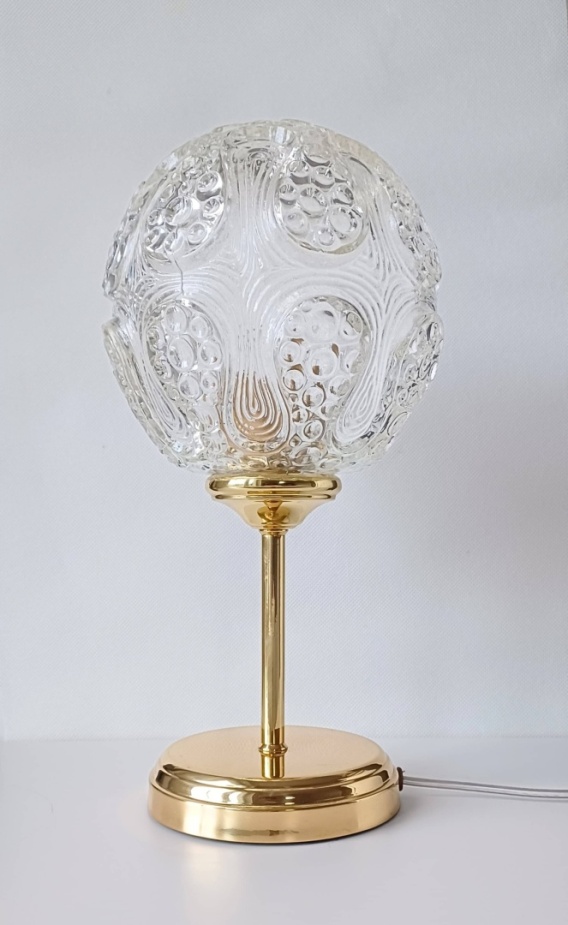 Lampa stołowa Clara 001 w złotym wykończeniu łączy elegancję z subtelnym stylem vintage. Mosiężna podstawa i dekoracyjny, szklany klosz pięknie rozpraszają światło, tworząc przytulny nastrój. Idealna do salonu lub sypialni — stylowa ozdoba każdego wnętrza.