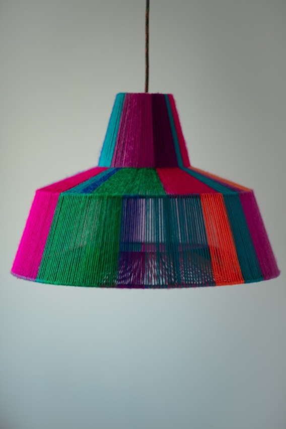 Lampa FUKAWIEC 2 kolorowa to ręcznie wykonana, stojąca forma z włóczki na stalowym stelażu. Wyrazista, dekoracyjna bryła o szerokości 50 cm nadaje wnętrzu charakteru. Na jedną żarówkę E27 (max. 40 W).