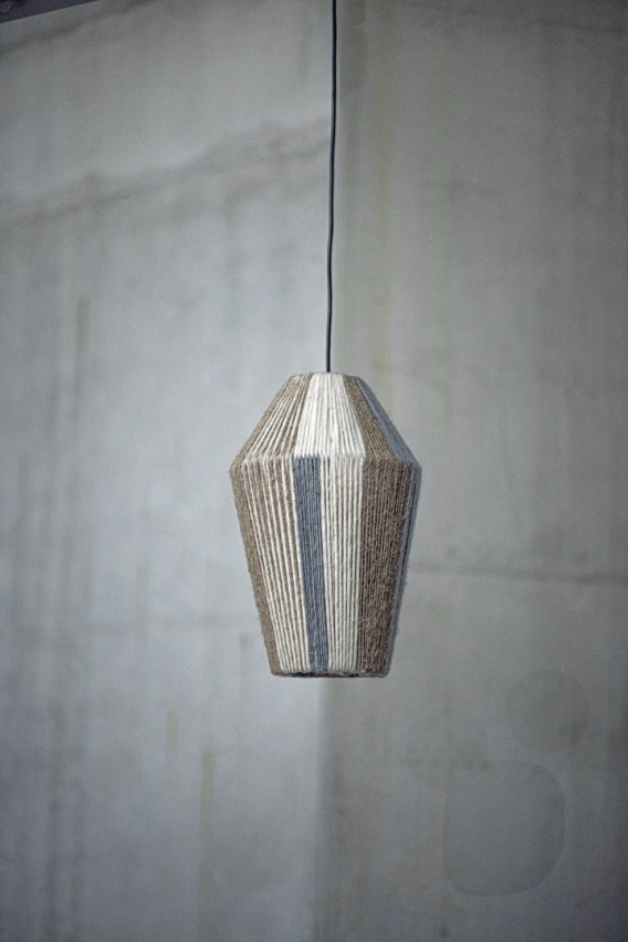 Lampa JAKLA 2 kolorowa to ręcznie wykonana, stojąca forma z włóczki na stalowym stelażu. Smukła bryła (39,5 x 25 cm) nadaje wnętrzu przytulnego, artystycznego charakteru. Na jedną żarówkę E27 (max. 40 W).