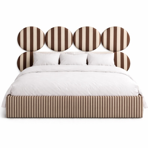 Lóżko tapicerowane DISSONANCE CIRCLE No.2 designerskie brązowe zagłówek paski