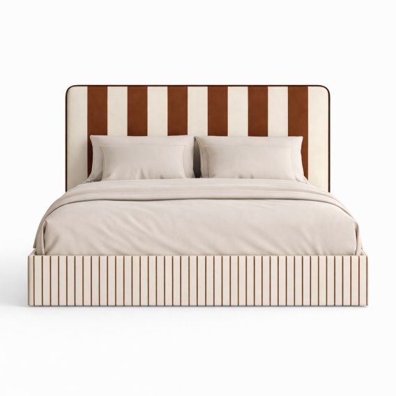 Tapicerowany zagłówek o grubości 5 cm zapewnia komfort podczas odpoczynku i pełni funkcję dekoracyjną, stanowiąc wyrazisty, graficzny akcent we wnętrzu.
