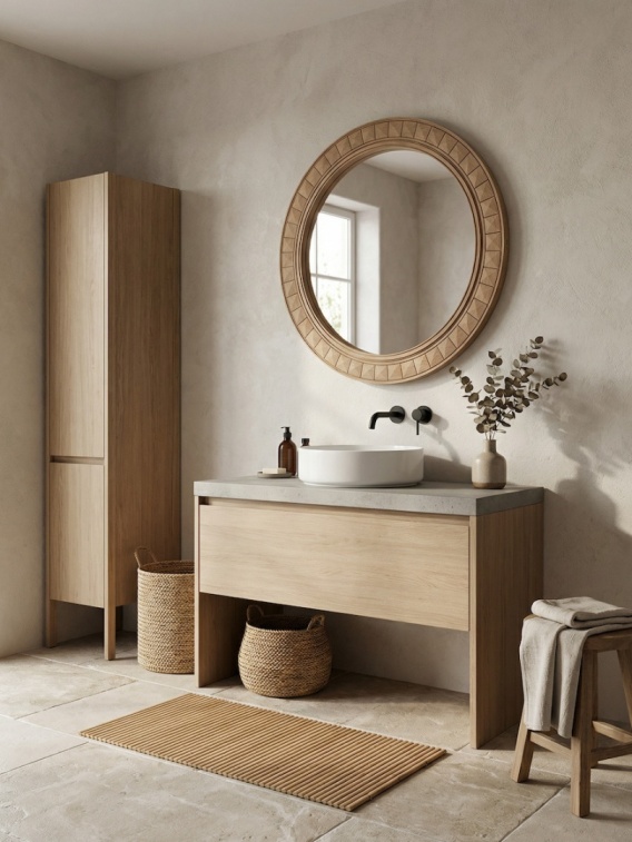 Lustro w dębowej ramie 100 cm z elementami ozdobnymi do łazienki