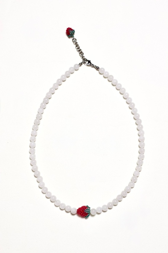 Naszyjnik Truskawka w Śmietanie z jadeitu zachwyca mlecznym odcieniem i ręcznie wykonaną koralikową truskawką. Subtelny, romantyczny i pełen dobrej energii — delikatny dodatek inspirowany harmonią natury i codzienną słodyczą chwil.