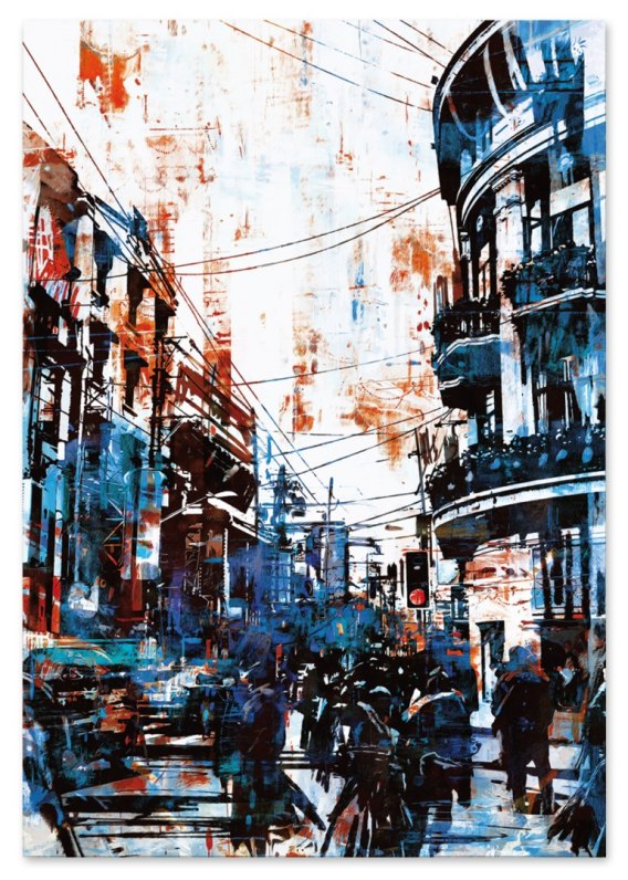 Plakat ABSTRAKCJA NIEBIESKIE MIASTO kolor