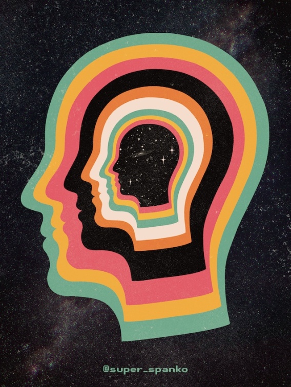 Plakat A4 z wielowarstwowym profilem głowy na kosmicznym tle zachwyca intensywnymi kolorami i efektem głębi. Psychodeliczna estetyka inspirowana latami 70. nadaje wnętrzu artystyczny, alternatywny charakter. Druk na papierze min. 200 gsm. Wysyłany bez ramy.