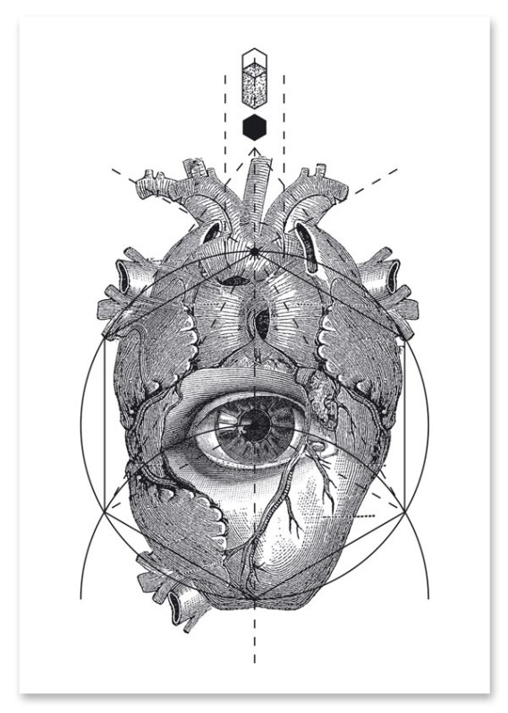 Plakat SERCA OKO GEOMETRIA czarno biały