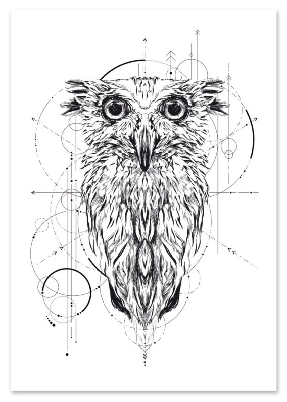 Plakat portret SOWA GEOMETRIA czarno biały