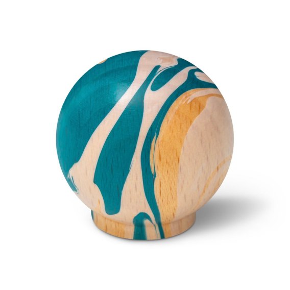 Uchwyt Meblowy Turquoise Chino - designerski uchwyt meblowy z drewna bukowego. Unikalny wzór inspirowany sztuką EBRU lub kolekcją Melange nadaje meblom wyjątkowy charakter. Idealny do szafek i komód. W zestawie śruba montażowa M4 x 25 mm.