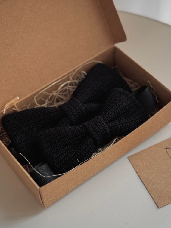 Ręcznie wykonany na szydełku zestaw muszek „tata + syn" z wysokiej jakości bawełnianego kordonka to wyjątkowa propozycja dla osób ceniących naturalne materiały, rzemieślniczą precyzję oraz dopracowane detale. Klasyczna czerń nadaje całości ponadczasowej elegancji i sprawia, że komplet doskonale sprawdzi się podczas rodzinnych uroczystości, sesji zdjęciowych czy ważnych wydarzeń.